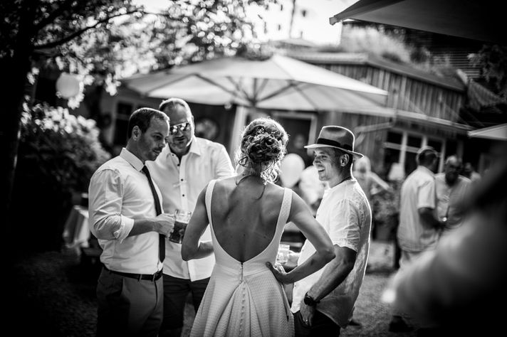 Nach der Trauung ging es erst einmal nach Hause – zu Anika & Jo, wo die beiden mit ihren Liebsten ein gemütliches Weißwurst-Essen veranstalteten. Eine schöne Gelegenheit für Familie und Freunde, in entspannter Atmosphäre zusammenzukommen, bevor es später zur Feierlocation weiterging.